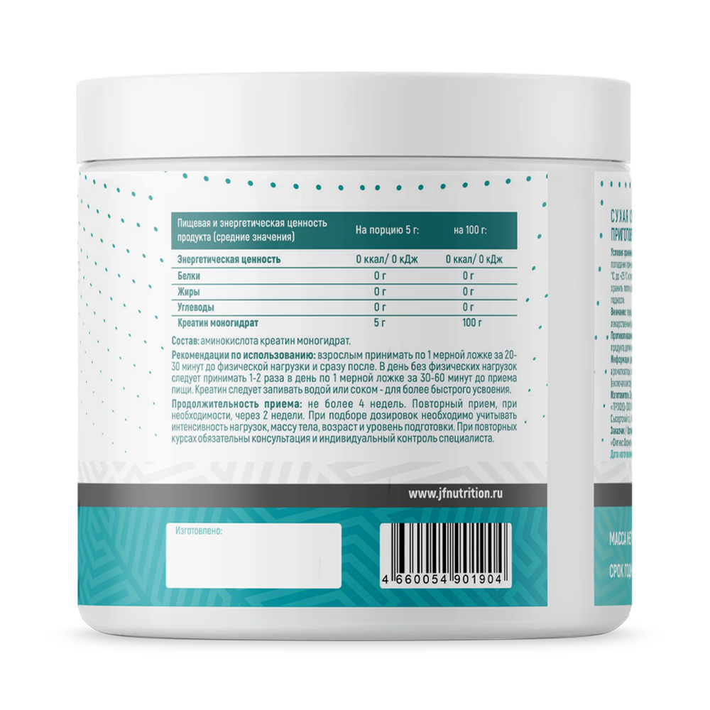 Эта добавка разработана на основе карбоновой кислоты, полученной из белков, не содержит сахара и красителей. Всего 100% натуральный Креатин моногидрат в форме микронизированного порошка, который легко растворяется в воде, быстро усваивается и дает ощутимый прилив сил и энергии уже через полчаса после приема.