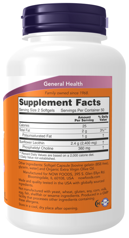 NOW Sunflower Lecithin 1200 mg, 100 капсул